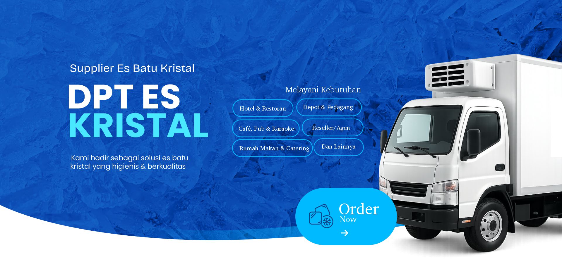 Dengan standar produksi yang terjaga, DPT Es Kristal hadir sebagai solusi terpercaya bagi berbagai sektor, seperti hotel, restoran, cafe, hingga pedagang kaki lima. Kami memahami pentingnya kualitas dan ketersediaan es dalam mendukung operasional bisnis, sehingga kami selalu memastikan stok tersedia dan siap kirim kapan saja.